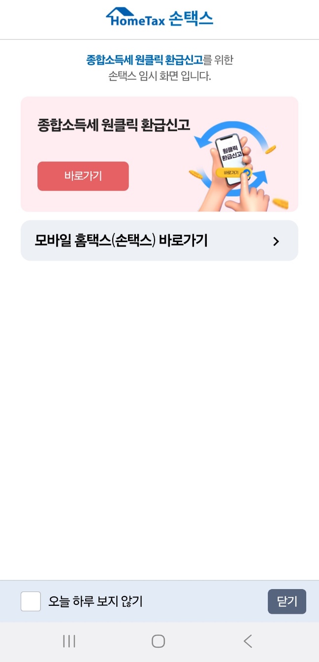 국세청 홈택스 앱에서도 동일하게 환급 조회 및 신청이 가능합니다.